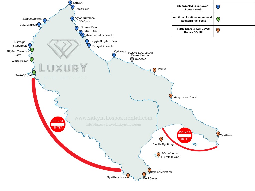 Your Luxury Motorboat will depart from Kavos Psarou Marina on the North East coast of Zakynthos nearby to resorts of Tsilivi Planos, Tragaki, Alykanas and Psarou. View On Google Maps →